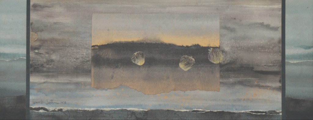 1976, graphite, acrylique et collage sur isorel, 30 x 76 cm