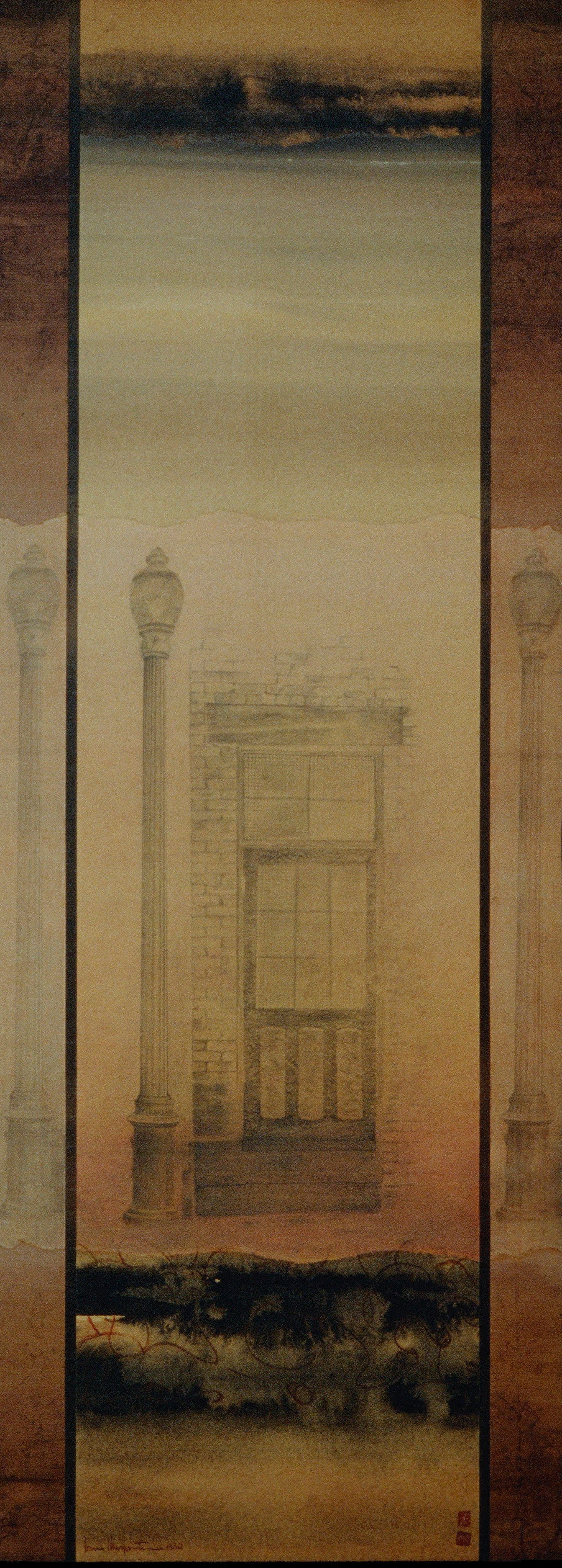 1980, graphite, acrylique et collage sur isorel, 122 x 46 cm , collection particulière